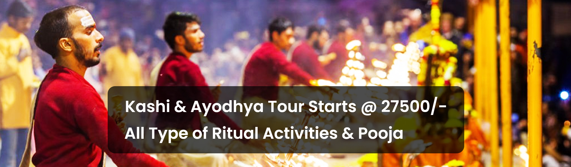Departure from Hyderabad Airport at 09.40 a.m. Arrival Varanasi Airport at 11.35 a.m. Transfer to hotel. After refreshment having Dharshan of Lord Kashi Vishwanath, Kashi Visalakshi and Kashi Annapoorneswari Temples . Evening visit Ganga Aarti by boating on the way visiting Manikarneka Ghat.